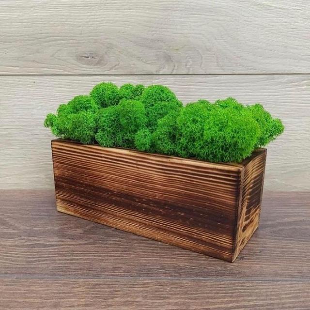 Дерев'яне кашпо зі стабілізованим мохом.Дерево з випалом.Декор з моху